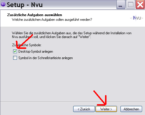 Kreuzen Sie "Desktop-Symbol anlegen " an und klicken Sie anschließend auf WEITER.