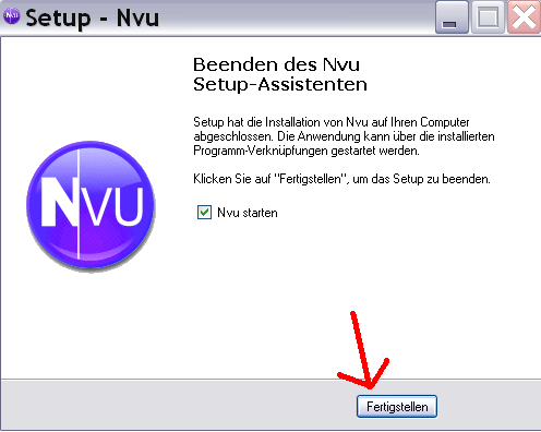 Ausserdem haben Sie ein NVU-Icon (lila) auf ihrem Desktop (Startbildschirm, diesen erreichen Sie mit gleichzeitigem drücken der WINDOWS-Taste und der Taste D auf ihrer Tastatur) mit dem sie das Programm jederzeit wieder starten können.
