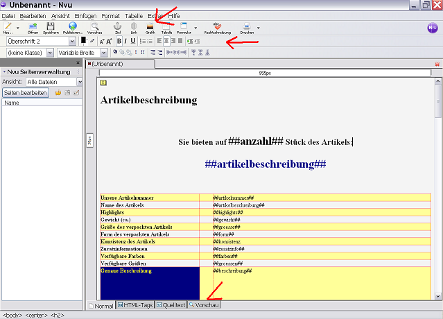 Mit diesem Editor können Sie HTML-Seiten ganz einfach erstellen und bearbeiten, wie z.B. ein Word-Dokument, und damit z.B. Templates für ihr eBayreseller-Panel zu erstellen oder allgemein um Websites zu erstellen, ihre eBayauktionen weiter zu bearbeiten etc.